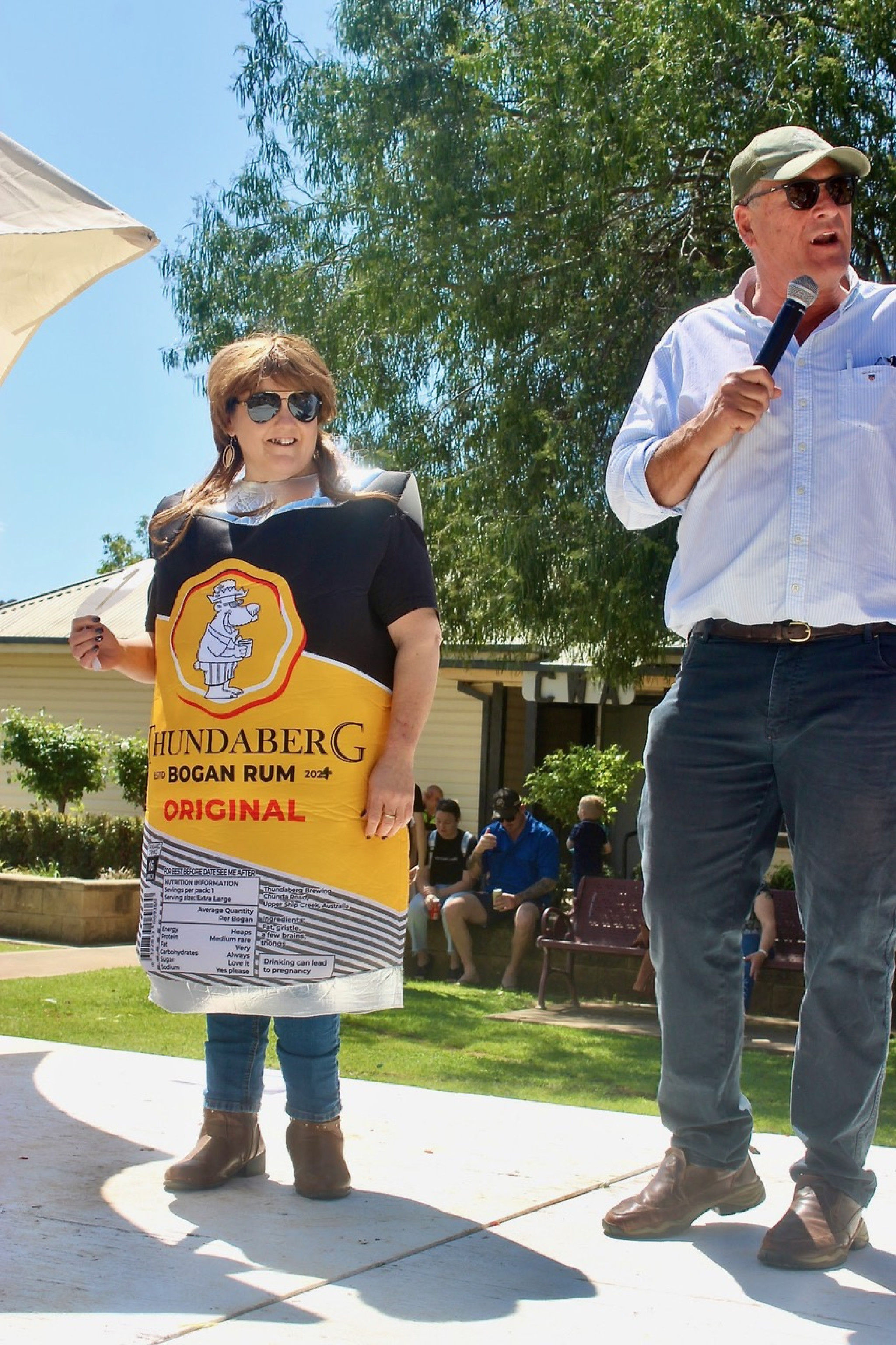 Mr Mason was even enticed onto the stage to contest the Best Dressed Bogan Bloke competition, competing against another visitor – Andrew Dundas from Wattle Flat – for the cash.